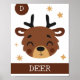 D är för hjort. Detta söta, enkla konsttryck är en del av en samling. Kombinera denna design med andra affischer i samlingen för att skapa ett galleri med konst för ditt barns sovrum.