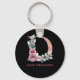 D Blommigt Monogram Namn Brev Rosa Agate Keychain Nyckelring