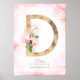 D Bokstavsmonogram Guldblad Rosa Magnolia Blommig Poster