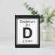 Inslag D - Deuterium från det periodiska bord. Även om det tekniskt sett är en variant av väte har det sitt eget brev och har därmed blivit en del av det elfte Mentala Bord! Underbar till använda som ett enda inslag, men ännu bättre att kombinera många-produkter för att skapa ord. Det kan vara med skjortor som lag eller med klistermärken/dekorativa artiklar hemma. Bakgrunden till färg kan ändras. De flesta produkter gör det också möjligt för dig att slå på/av den vita fyllningen i designen, så att du t.ex. kan lägga in ett bakgrundsfoto av t.ex. födelsedagspojken. Var kreativ. Våra formgivningar är avsedda att "mixtras" med och bygger som sådana med anpassning i åtanke.