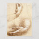 Postkort för Leonardo da Vinci Händer. Metalpoint-skiss på papper från 1474. Renaissancens konstnär Leonardo da Vinci skapat några av de mest bedövande anatomiska studierna under perioden. Hans undersökning av händer är fortfarande en av de mest berömd skisserna i Renaissancen och beskriver den ära, skönhet och rörelse som konstnären kunde fånga med sin penna. En söt gåva till fläkt av Renaissance konst, Leonardo da Vinci, och anatomiska skisser.