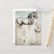 Leonardo Da Vinci häst- eller Leonardos hästvykort. Leonardo Da Vinci bemyndigades i 1482 för att avsluta en hästskulptur för hertigen av Milan. Though avslutades projektera aldrig, skissar skapat av konstnären återstår några av hans populäraste teckningar. Detta Da Vinci som hästen skissar, är en underbar gåva för fläktar av renaissancekonst, Leonardo Da Vinci och berömda hästteckningar.