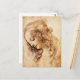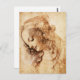 Da Vinci Womans vykort. Bläck sketch papper från 1473. En av Leonardo da Vincis mest beundransvärda stekar, en kvinnlig kvinnlig chef har ett vackert ungt dam som sänker ansikte till tittaren med ögon som är halvöppen i betraktande, och hennes långa flytande hår hängs ner över ansikte och axlar. Hon bär en söt diadem och små bögar i håret. En vacker gåva till fläkt av Leonardo da Vinci-skisser, High Renaissance Art och berömd porträtt.