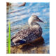 Ett foto av en kvinna på Mallard anka som stod i damens ytliga område, med vatten flytta vid gevär borta från henne i ett cirkulärt rörelse. Copyright Kimberly J Tilley.