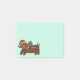 Grafisk illustration av gulliga taxar som ha på sig Santa hattar. Du kan välja bakgrundsfärgen för denna design. Varje vadderar kommer med klibbiga 50 noterar utskrivaven oavkortad färg. Personifiera det och tillfoga namn eller meddelandet. Ljusna upp julhelgen med denna roliga design. Underbar idé för att lagerföra stuffers.