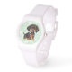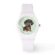 En klocka med en snygg svart och tanka Daschund-valp med abstraktens grönt bakgrund. En perfekt klocka för alla som kärlek Dachshunds...