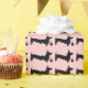 Dachshund med party hatt och cupkakasilhuett över vintagens rosa eller ändra bakgrunden till färg.