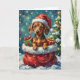 A festive and fun Christmas illustration featuring a single Dachshund sitting inside Santa’s bag full of presents while wearing a Santa hat. With glowing fairy lights, warm cozy lighting, and a festive red and green color palette, this design is perfect for dog lovers, holiday enthusiasts, and anyone who enjoys cheerful holiday artwork. Ideal for Christmas gifts, apparel, mugs, cards, and seasonal home decor.
