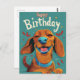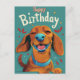 Dachshund födelsedags hälsning. En leende Dachshund önskar Glad födelsedag. Perfekt för alla Dachshund-älskare och Dachshund-ägare.