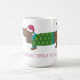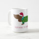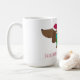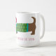 Den här roliga julen mugg är utkorkad med en illustrerad dachshund i en julhatt "Dachshund genom snö" i rött under. Du kan anpassa ord på mugg om du vill.