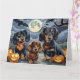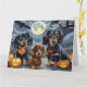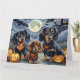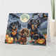 Släpp upp spookandan med den här eerie Halloween-designen med en hundar-förpackning under en mörk, månbelyst himmel, omgiven av flygande fladdermus och glödande pumpor. Perfekt för dem som kärlek en aning skrämmande roligt med sina hårigets vänner!
