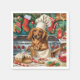 Fånga helgdag glädje att baka med den här härliga scenen med en glad kock omgiven av julgransar och festliga dekorationer. En hjärteberande firande av årstidens sötaste traditioner.