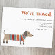 Med en roligt och snabb Dachshund-hund, perfekt för hundälskare som vill sina spännande nyheter med en liten bit humor. Framsidan har en visuell illustration av en Dachshund som bär klara och lekfulla, strippade stickkläder. Oavsett om du är flytta över hela stan eller över land är detta meddelande ett underbart sätt att behålla dina vänner och din familj uppdaterad på din ny adress. Få redo att vädja till svan i upphetsning! Originalkonst av Nic Squirrell.