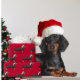 En Dachshund-hund i en julklapp. Öka din julhelg med vår festliga hund som är papper med en vacker Dachshund klädd i en julhatt. Den här fina designen ger dig en lekfull beröring till dina julklappar.