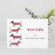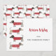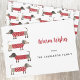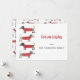 Söta och bedårande Dachshund korv eller Wiener hundar i festliga röda och vita stickade tröjor. Ändra namnet och hälsningen för att anpassa. Baksidan har ett matchande mönster. Originalkonst av Nic Squirrell.