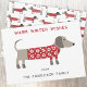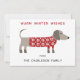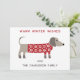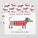 Söt och bedårande dachshund korv eller wienerhund i en festlig röd och vit stickad tröja. Ändra namnen och hälsningen för att anpassa. Originalkonst av Nic Squirrell.