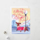 Dachshund jul Merry Bright kalligrafi Semesterkort set dig på en promenad i en snöig park med en dachshund iklädd en jultröja som bär en julboll i munnen,