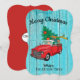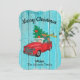 En söt specialdesignad dachshund som handlar julgran i sin klassiska röda lastbil.
