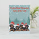 Det är årets mest storslagna tid! De där vackra svarta och bruna dachshundar som bär tomthattar med snövinter-bakgrund borde få vem som helst att le. Du kan också anpassa meddelandet på baksidan av kortet!