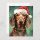 Färgfull och glatt juldesign med en Dachshund som bär en julhatt.