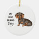 Är din Dachshund din bästa vän? Då är den här personligens keramiska julprydnad perfekt för dig! Anpassa med hund namn på framsidan och anpassningsbarna på baksidan.