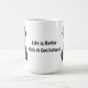 Dachshund Puppy Sitta och Tittar med ocent Kaffemugg