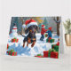 En lekfull Dachshund springa genom snövinteckan, som bär en röd julhatt. Denna charmerande utformning belyser rasens långa kropp, kort ben, och den andade personligheten samtidigt som man fångade julhelgens värme och glädje. En härlig vinter-fullt av festlig cheer.