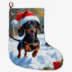 Dachshund som springer i Snö med julklapp Stor Julstrumpa