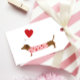 Dachshund-valentin, Alla hjärtans dag rosa och röd Presentetikett