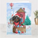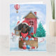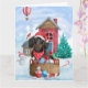 En perfekt julklappsidé för dina hundälskande vänner, En söt hund som sitter i snön bredvid julgranen och hundhuset är en måste-ha present för dig eller dina vänner i jul.