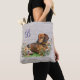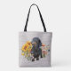 Monogrammad dachshund hundar till väskan. Båda sidor har bilder av dachshunds. Den ena är svart och den andra brun. De står och sitter bland vilda blommor och solblommor. Den ena sidan har en inledande mall som kan tas bort om du föredrar att påsen är tom. Faux-träsket är figursättningen runt bakgrundsbilden. Baggar är fodrade, har ett svart handtag och kom i två storlekar.