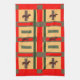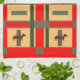 Dachsundkökshandduk - dämpat rött, brunt och grönt smink designen med "en whiff" av dachsunds som planteras in i handdukdesignen.