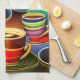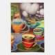 Den vita surreala AI-tekniken genererade digitala konsthanddukar i köket med färgfulla kopp fyllda med kaffe.