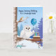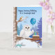 This charming January birthday card features a striking Snowy Owl holding a snowflake balloon beside a rich chocolate birthday cake, set within a cozy winter scene. In the background, a small Barn Owl looks on from the snowy landscape, adding a gentle touch of nature and seasonal charm. Perfect for a dad who appreciates wildlife, peaceful winter moments, and unique artwork, this nature-inspired birthday card brings warmth, character, and winter wonder to his special day.