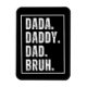 Dada pappa Pappa Bruh är en rolig, omstörtad vit på svart typografi av de fyra stadierna i namn som man kallas när man uppfostrar barn. En perfekts far dag eller födelsedag eller en gåva till en speciell dag, pappa, pappa, pappa, pop, far, make från en fru eller ett eller flera barn.