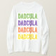 This design showcases the word "Dadcula" in a striking, stacked formation, rendered in a festive, blood-dripping font that exudes spooky charm. The text pops in four vibrant Halloween colors—green, purple, orange, and yellow—creating a bold, eye-catching statement perfect for the holiday season. For dads who shy away from elaborate costumes, this "Dadcula" design is an ideal Halloween solution. It’s a hassle-free, comfortable alternative to fussy costumes, appealing to those who prefer simplicity while still joining the spooky fun.