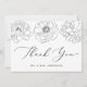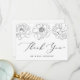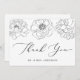 Tack för elegantens blommigt, ett kort med en vit bakgrund som har en vit bakgrund och en gräns av vita svarta blommor. "Tack" visas i ett vitt, modernt skript med ditt namn som visas nedan. Kortets baksida innehåller ditt meddelande i svart text. Tack för blommigten är perfekt till använda för bröllop, möhippor, babyduschar, födelsedagar med mera!