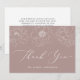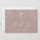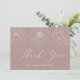 Tack för elegantens blommigt, tack vare ditt kort med en vit blomma gräns av dårhet med dammig ro bakgrund. "Tack" visas i ett vitt, modernt skript med ditt namn som visas nedan. Kortets baksida innehåller ditt meddelande i svart text. Tack för blommigten är perfekt till använda för bröllop, möhippor, babyduschar, födelsedagar med mera!