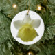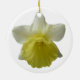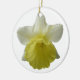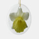 Den här prydnaden har ett vackert makrofoto av en Daffodil som visar den här anläggningen i vackra detaljer efter en regndusch. Blomman är vit och gult och är täckt av regndroppar i gnistran i ljuset.