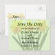 Om din favoritblomma är dillrar skulle den här vackra daffodildesignen, Daffodil Trio, vara ett val av perfekt för dina "Save the Date"-förråd. Välj mellan kort, magneter, etiketter och frimärke. Kan användas för bröllop, förlovningsfest eller årsdag party.