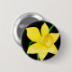 Knappen Anpassningsbar har en stor fullt öppen Gult Daffodil som täcker nästan hela knappen med svart bakgrund och text vid grund. Visas på standardnivå storlek. Fäst tillbaka.