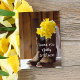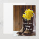 Säg tack och visa er uppskattning efter möhippan i mars, april eller maj eller giftermål med den charmerande Gulten Daffodils och CowboyBoots Landsbyggsbröllop Flat Tackkort. Denna söt anpassningsbar tackkort av rustik chic har ett fyrfärgat fotografi av westerna cowboyskor av brunt läder fyllda med gult narcissus-blommar med en blommigt veil och lada-trä på vit satin. Perfekt för en ceremoni och mottagning i party eller gårdstranch stil giftermål.