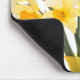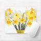 Anpassadets musknapp med vackra daffodils bouquet i gult-grönt vas på vit bakgrund.