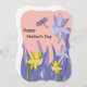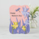 Sött Mors dag-kort med dragonfly och affodils med lilac-, gult- och rosa bakgrund. inuti citattecken.