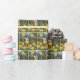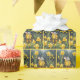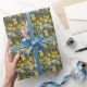 En söt grått-mus med gult regn och stövlar i en daffodil trädgård i regnet.