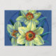 Njut av vår när som helst med det här blommigten. Daffodils bra Art-vykort. vykort skapat från den ursprungliga målningen "Daffodils - joys of vår" av Sarah Trett. Reproducerad från ursprunglig vattenfärg och gouacher-målning på blått kort av Sarah Trett.