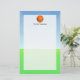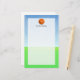 Tillfoga barnets namn eller annan speciella text till denna roliga ljusa och färgrika baskettemagåva. Underbaren för barn, som älskar utomhus- ringar, lek på ett lag eller precis kärlek som får läkarundersökning, övar. Grön utomhus- bakgrund för gräs och för blå himmel med orange rundab-boll.
