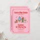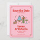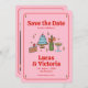 Med Whimsical Hand plockade Bold Red & Rosa Save the Date Call kombineras lekfulla, handritade illustrationer med fet återtypografi på mjuk rosa. Baksidan har plats för ett personligt foto, skapar det som en roligt och snyggt för att meddela din speciella dag! Om du vill ändra texten väljer du "Information". Om du vill justera textens placering, teckensnitt eller färg klickar du på "Redigera med Design Verktyg".