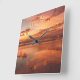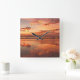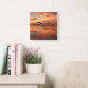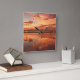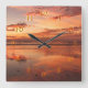 En vacker orange och ett guld-hav solerade himlar spegel. Två surfare väntar i dagarna i vågar i detta fredliga kustminne.