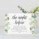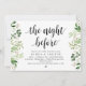 Modern Rustik Grönska Eukalyptus,, Svart Skript-tema invitationskort (med kortets titel: kvällen före). Det är perfekt för din middagsfirande inför bröllopet, före din stora dag. Lägg till dina detaljer i matchande svart teckensnitt / bokstäver.